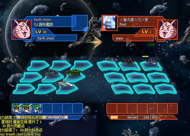 沉迷于OGame阶段诞生的创意,领土占领连线的国战策略网游鼻祖,之后此类like游戏在国内相当多。 棋盘中有8个玩家势力区域,中心为高资源EU区域,玩家通过争夺资源区碰撞战斗。战舰和舰队全可自定设计,并搭配带有技能的指挥官。